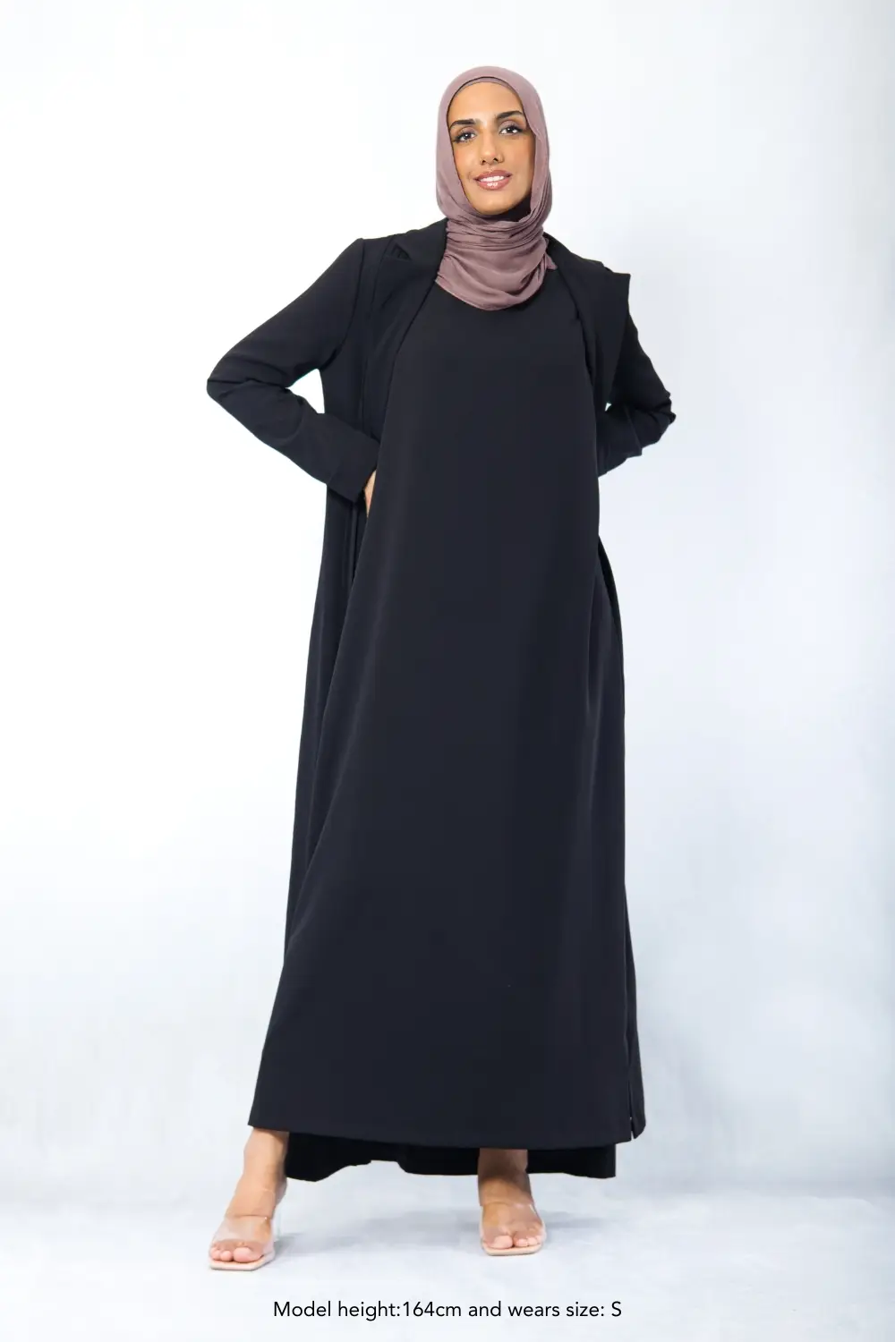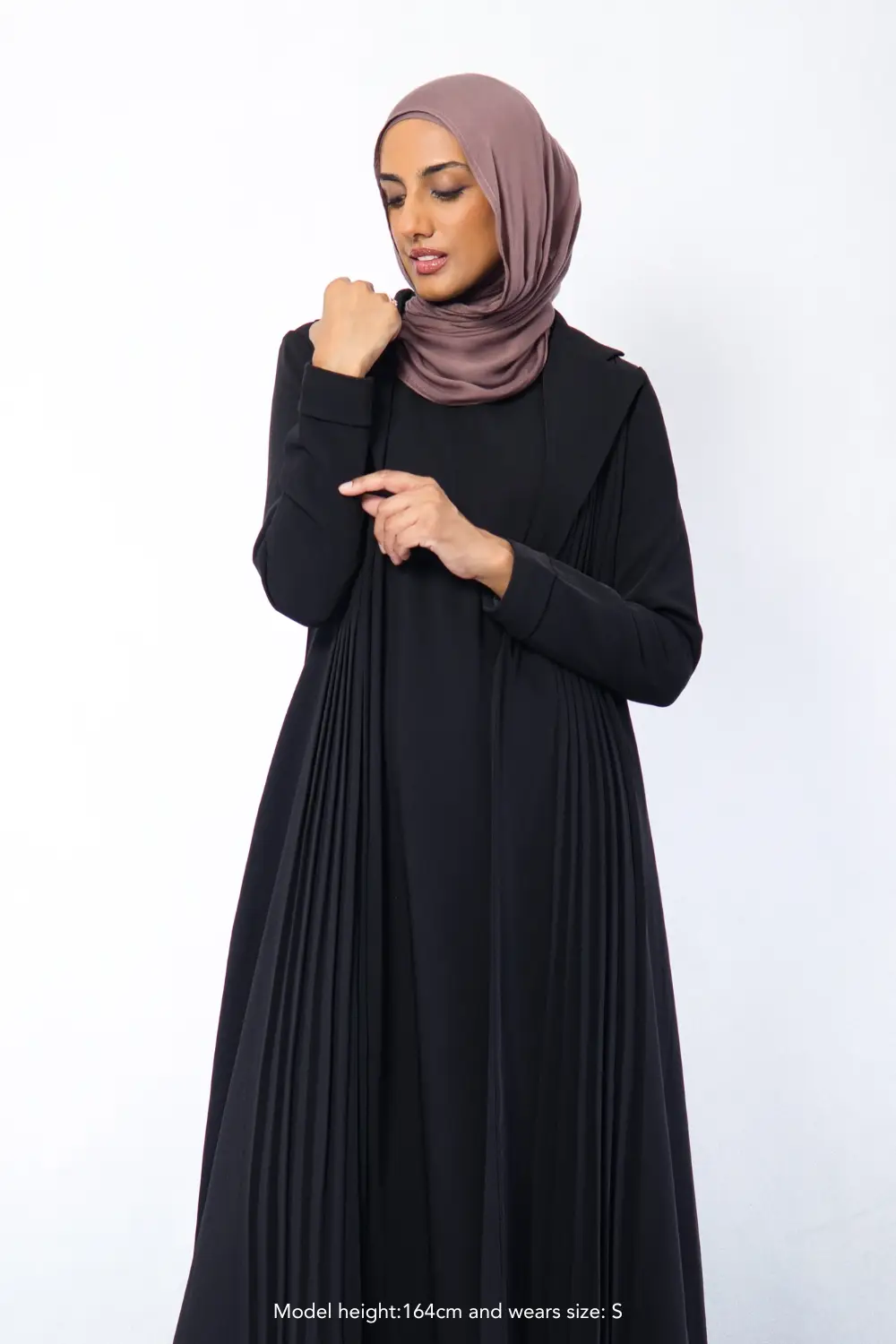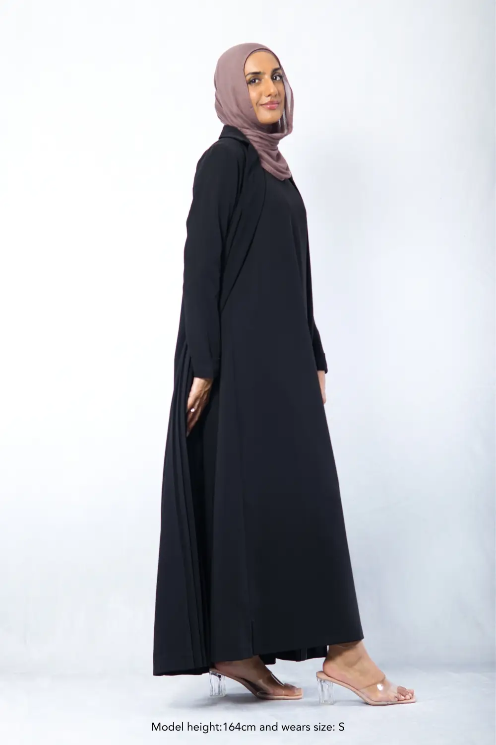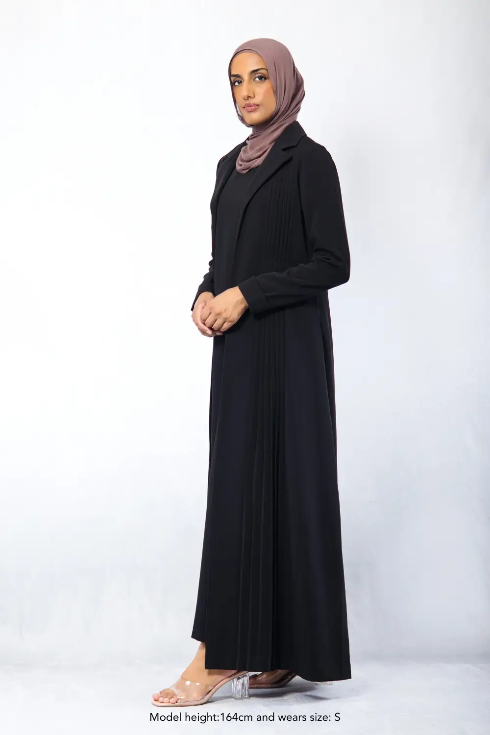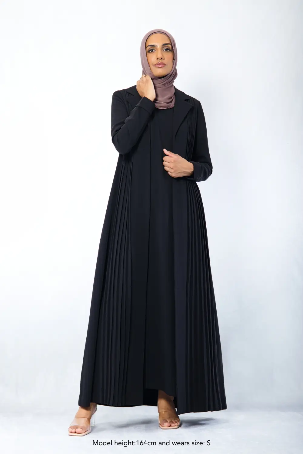 Step into elegance with the Amani Pleated Blazer Set, designed for a polished, modest look without compromising on comfort. Made from premium non-creasing crepe fabric with a soft satin lining, it drapes beautifully while offering all-day ease. The tailored blazer features hand-pleated details and inside pockets, while the sleeveless inner dress ensures free movement with a discreet back zipper for easy wear. Perfect for the corporate office and formal events