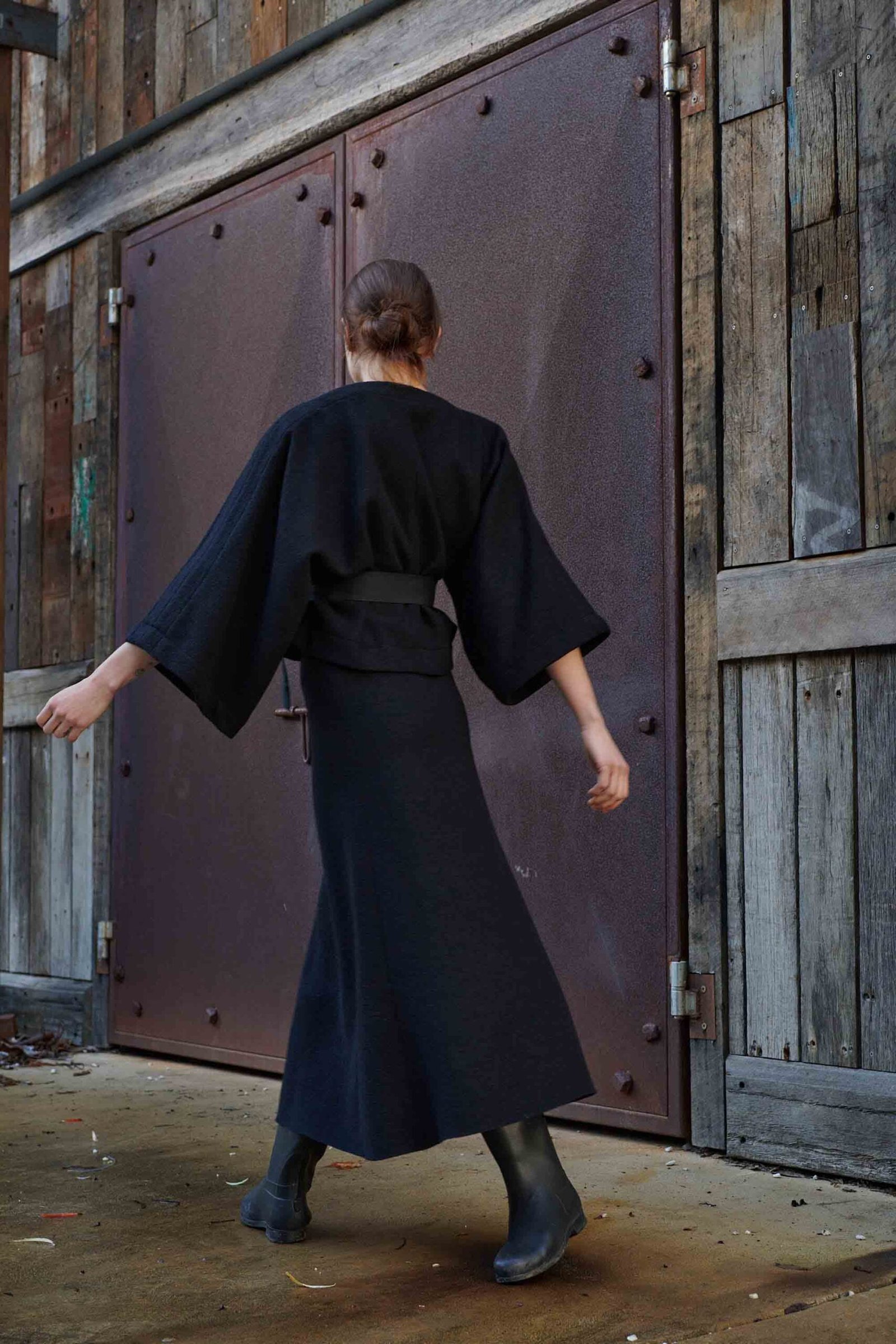The midi skirt has a rolled elastic waistband allowing flexibility to wear high or low on the waist. It is unlined to fully utilise the stretch of the boiled wool knitted fabric. The midi skirt is true to size and designed to be worn as a neat fit. It has a clean cut hemline. The Midi Skirt is designed, pattern made, sampled, and hand cut in our Haberfield studio in Sydney. It is then sewn and finished in Sydney Australia by our local maker with great care and expertise, in limited numbers.