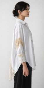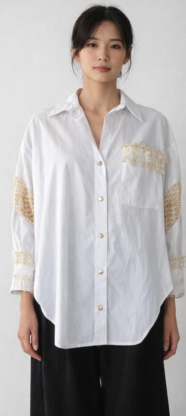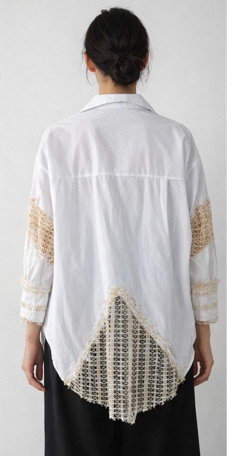 A modern shirt crafted from reclaimed lace, giving heritage fabric a new life