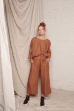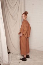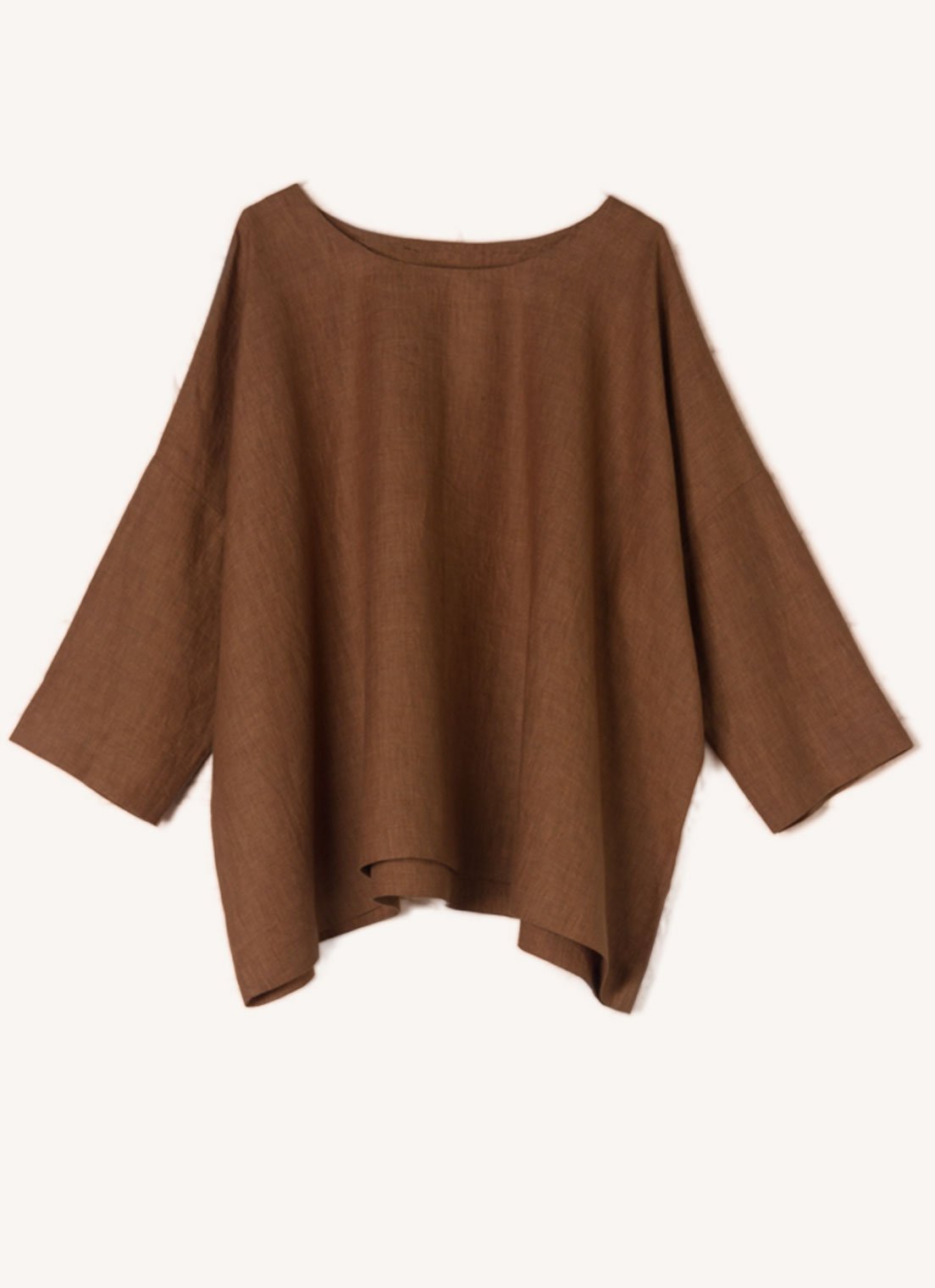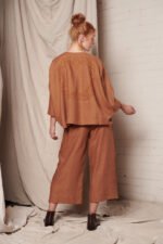 It is an easy fit, generous top with long, straight sleeves and it drapes to a beautiful curve at the sides and easily caters to sizes 8-18. It is made from pure European linen that is woven especially for us in India. The Cross Stitch Ela top is available in White, Blue, and Bronze colourways. This garment is designed and sampled in our Haberfield Studio in Sydney and handmade in New Delhi, India.