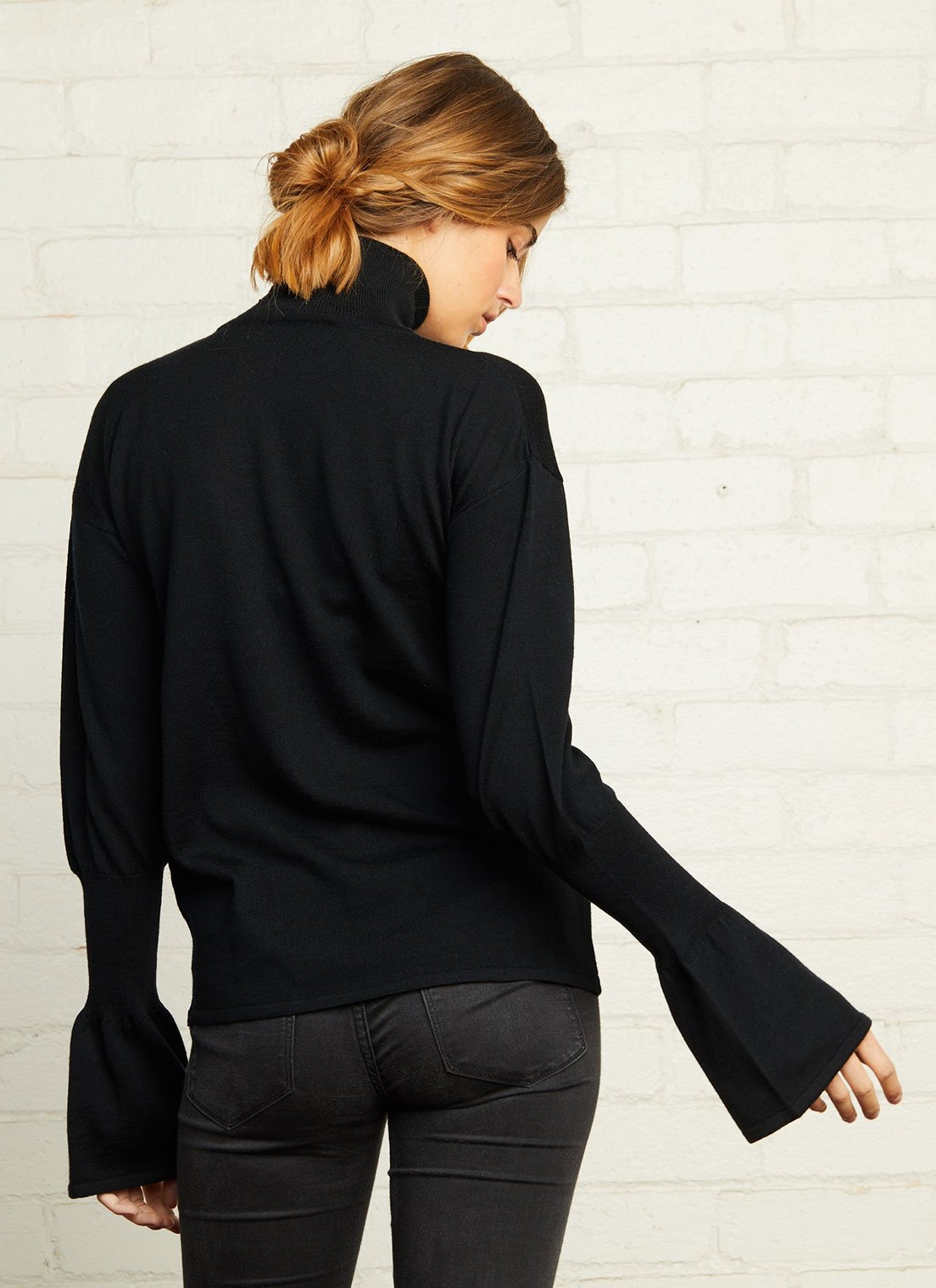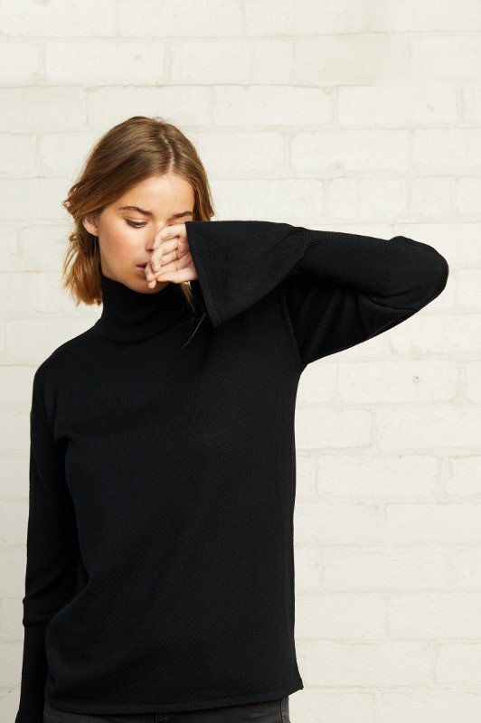 Proudly made with Australian pure merino wool, the Ira Polo Knit features a flattering turtleneck and delicate bell sleeves.