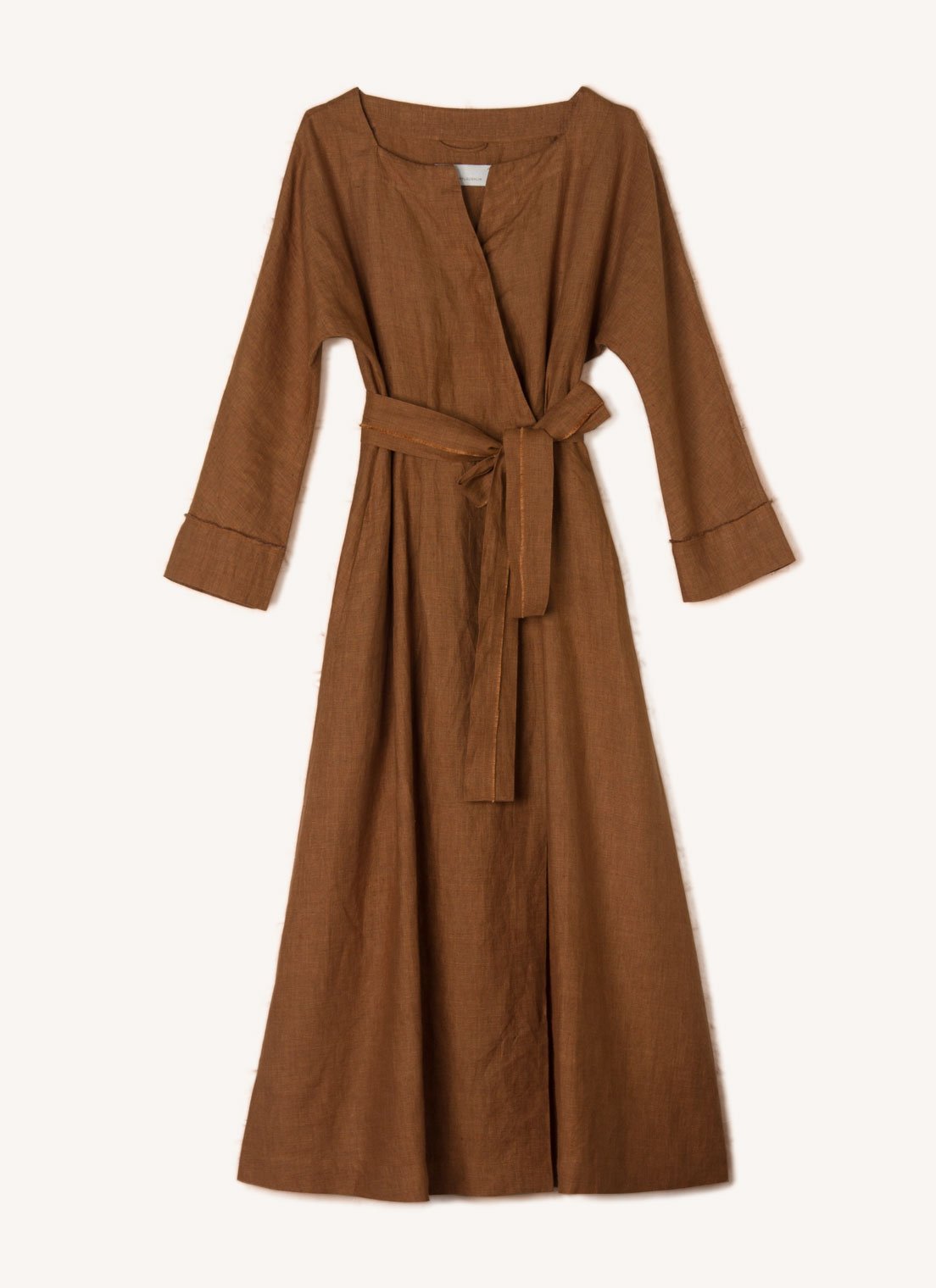 Another timeless piece, the Margot Dress is a versatile, mid-calf length, wrap dress made from European linen that is perfect for in-between seasons.