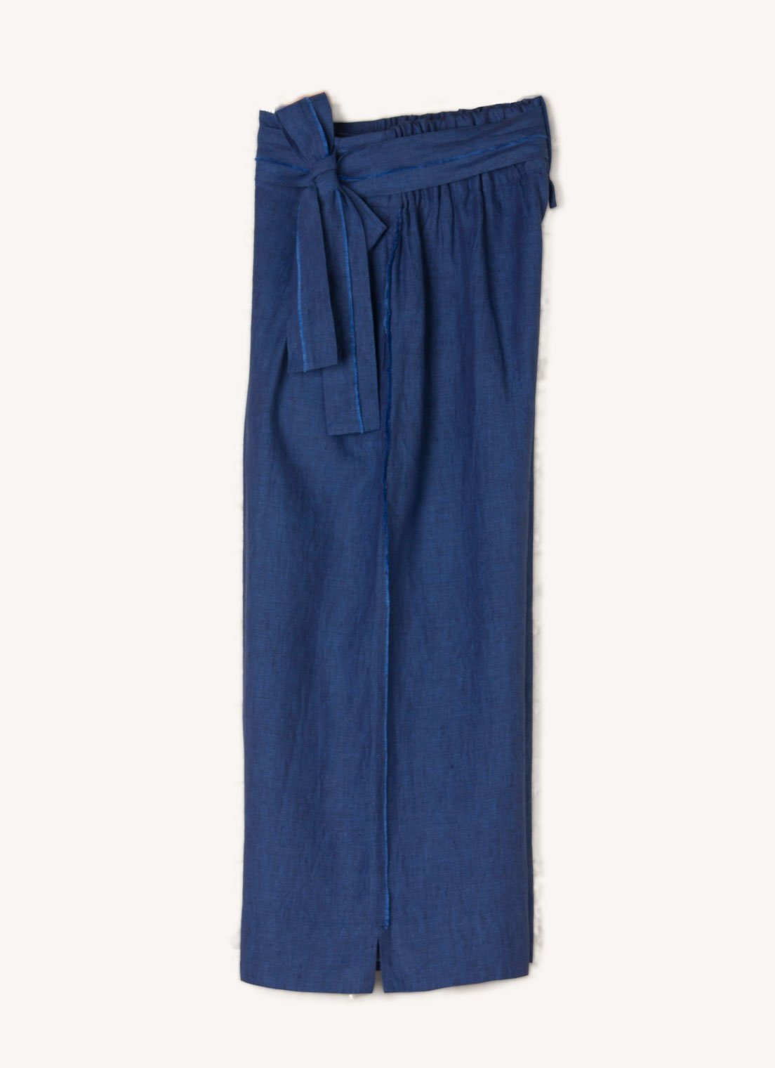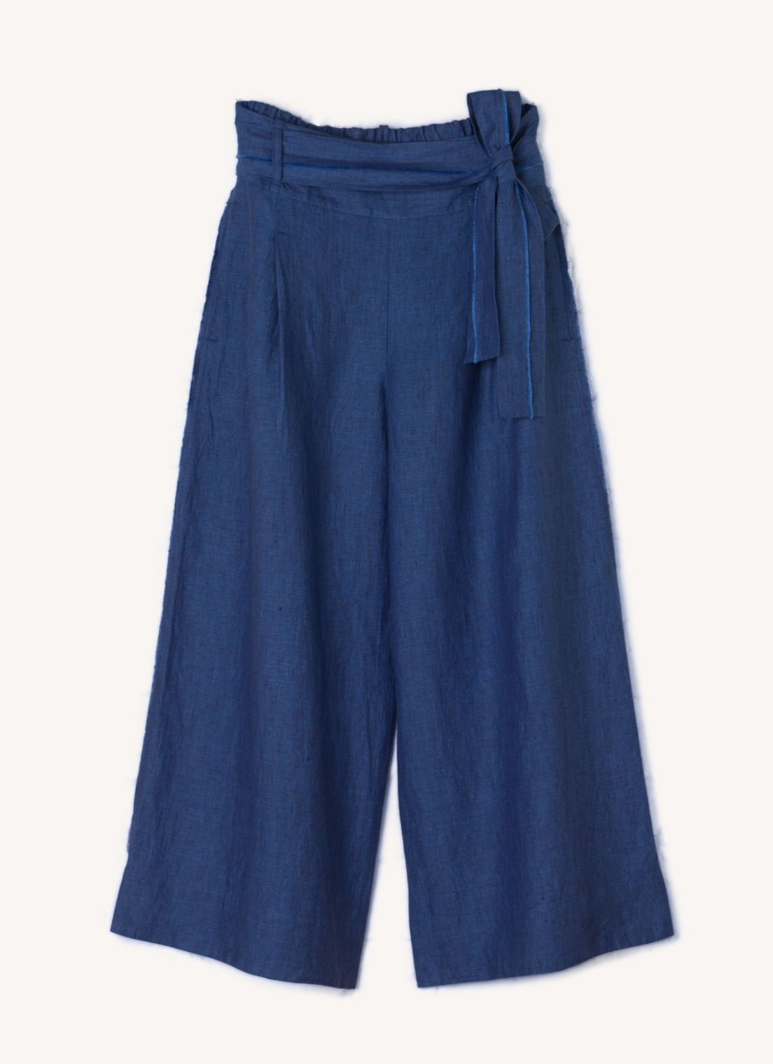 The pants feature a wide waistband, side seam pockets and a tie belt. The side seam of the pants and the tie belt are eloquently detailed with a hand frayed feature. Made from European linen that is woven exclusively for us, this garment is designed and sampled in our Haberfield Studio in Sydney and handmade in New Delhi, India.