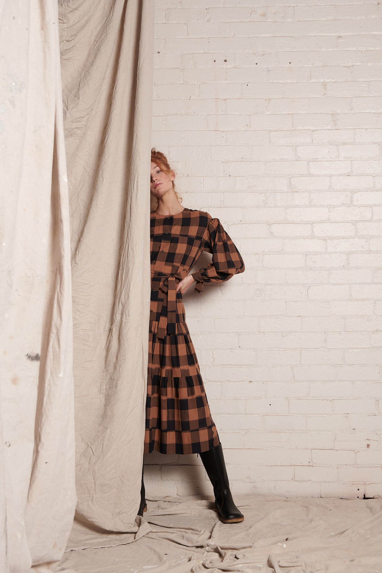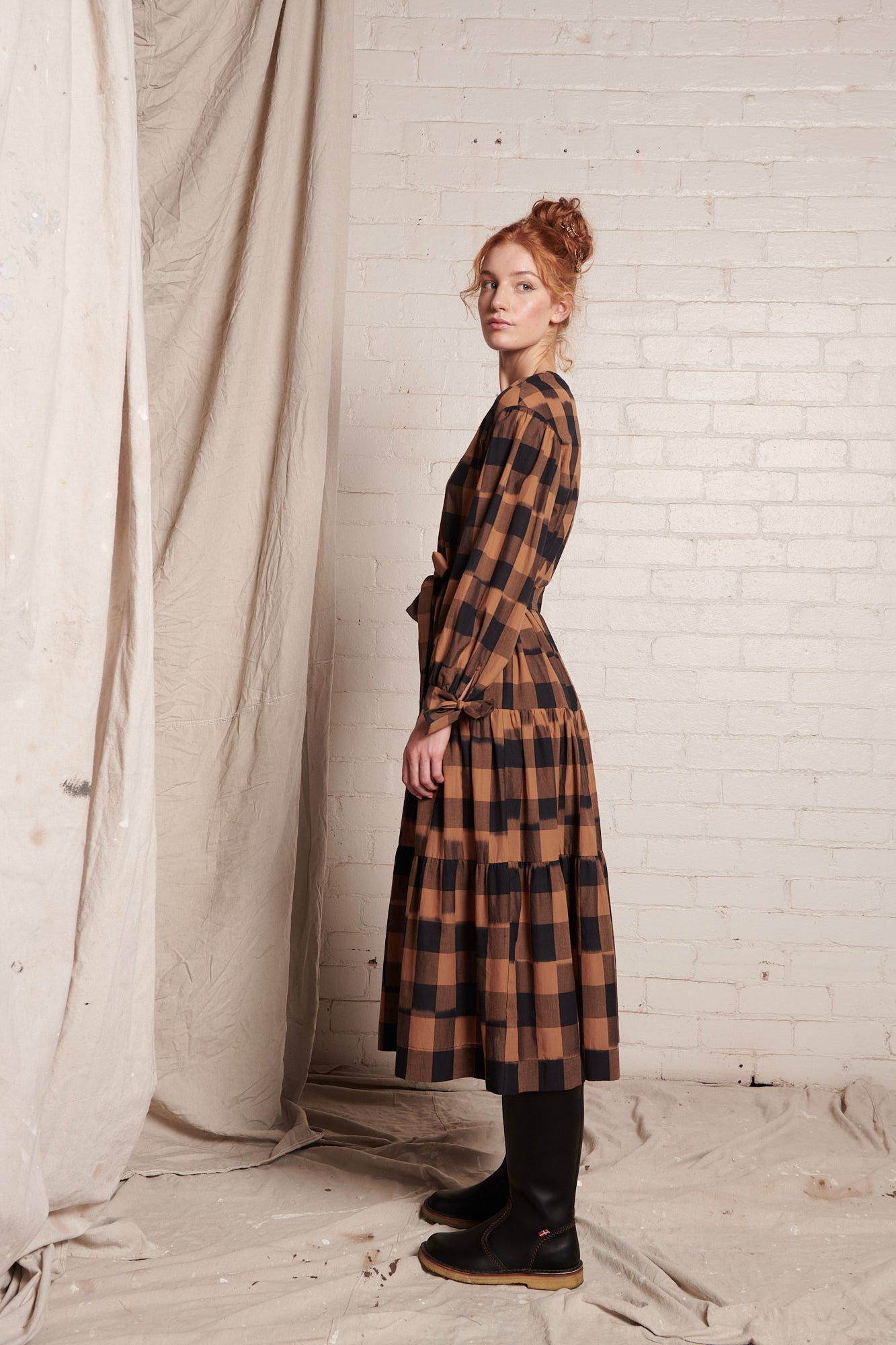 Tamanna Dress Bronze Plaid