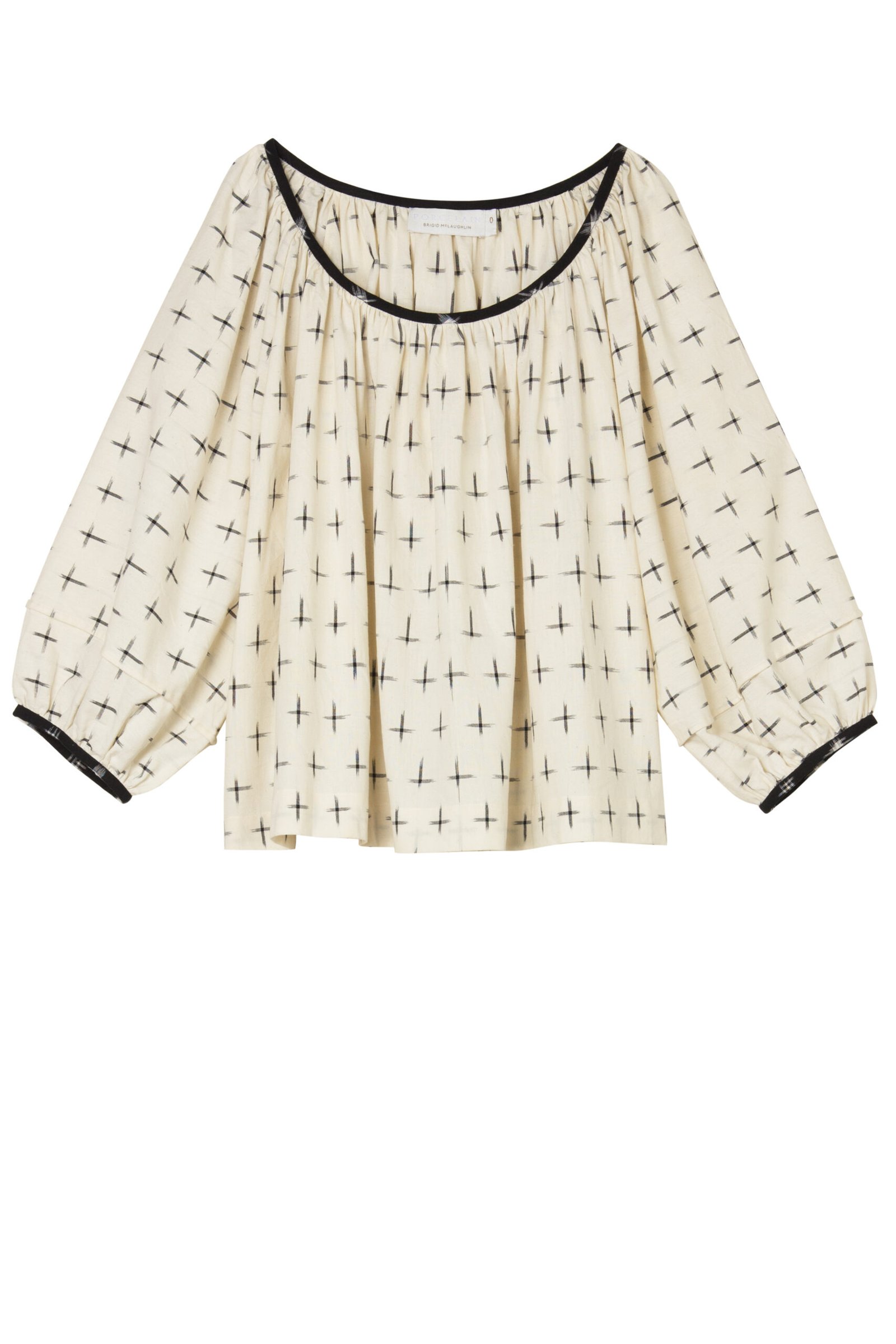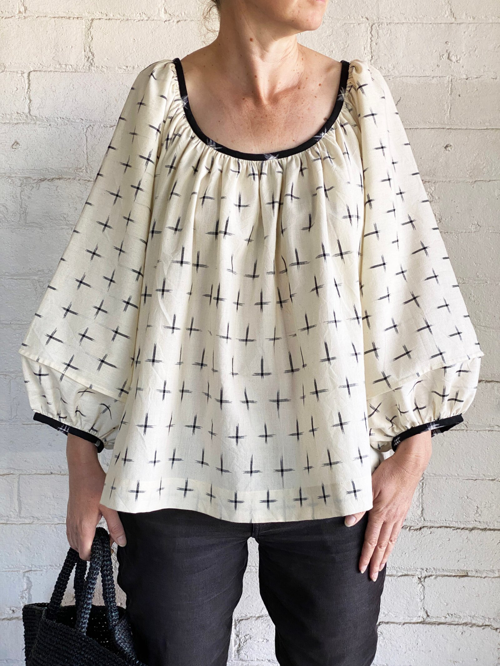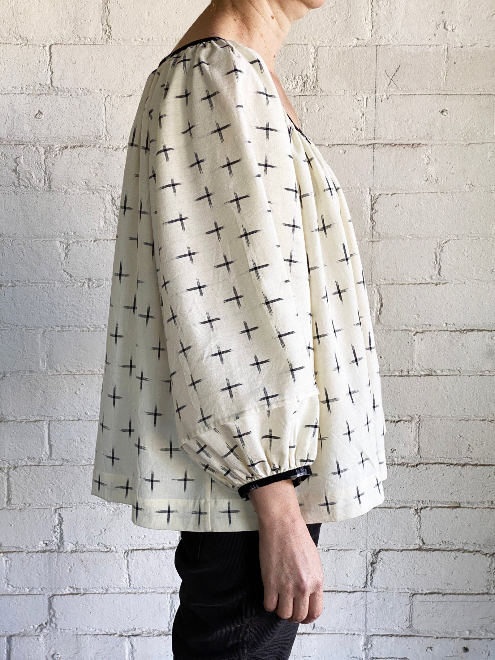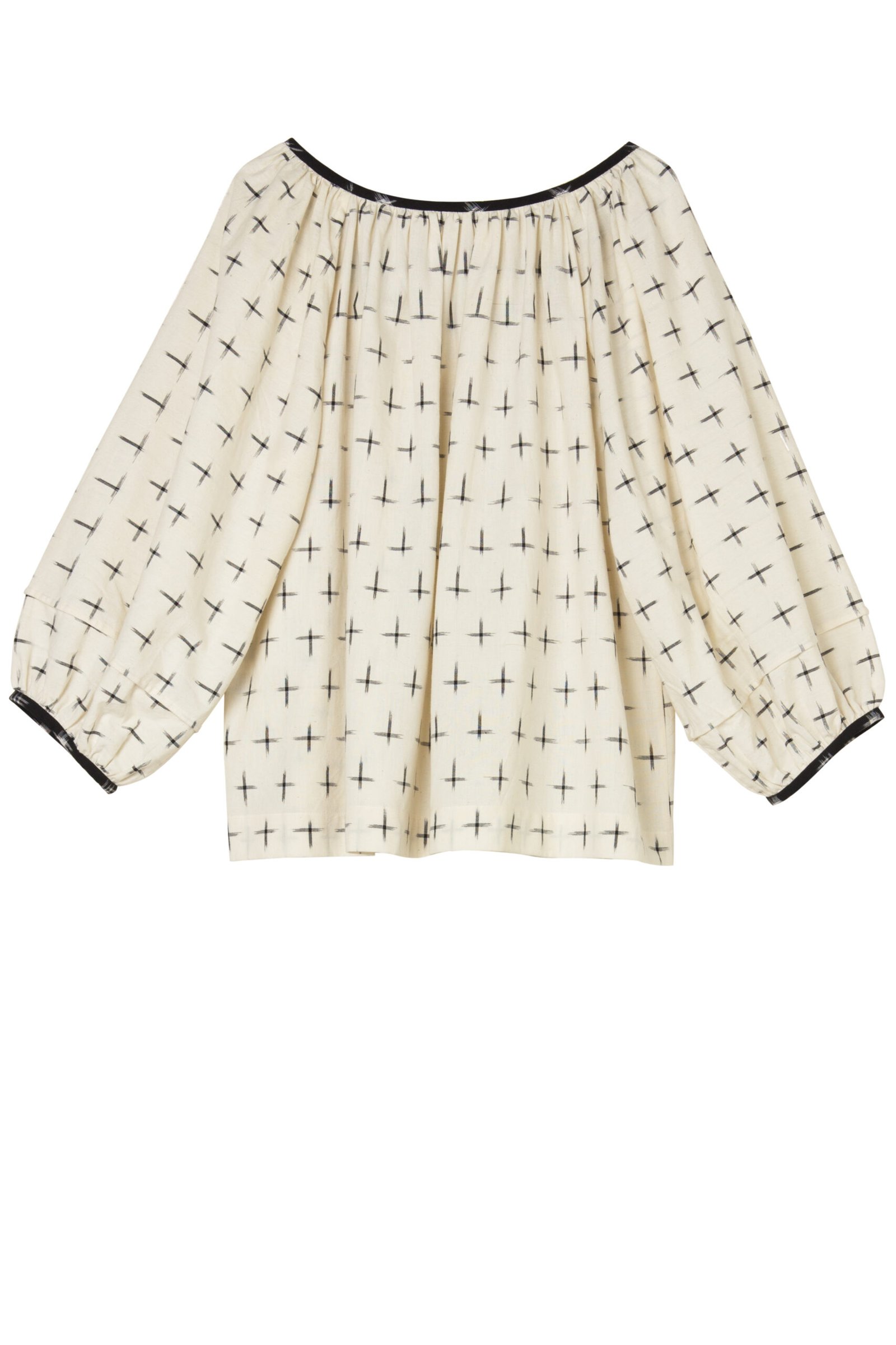 Tanvi Top Cream Crosshatch Ikat Cotton