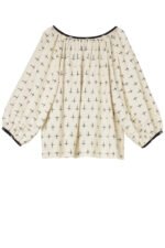 The Tanvi Top is a is an easy-fit, One Size Fits all top featuring a wide scoop neckline with gathers radiating from the neckline.